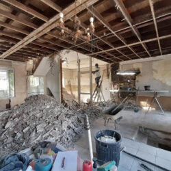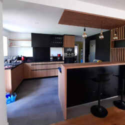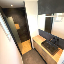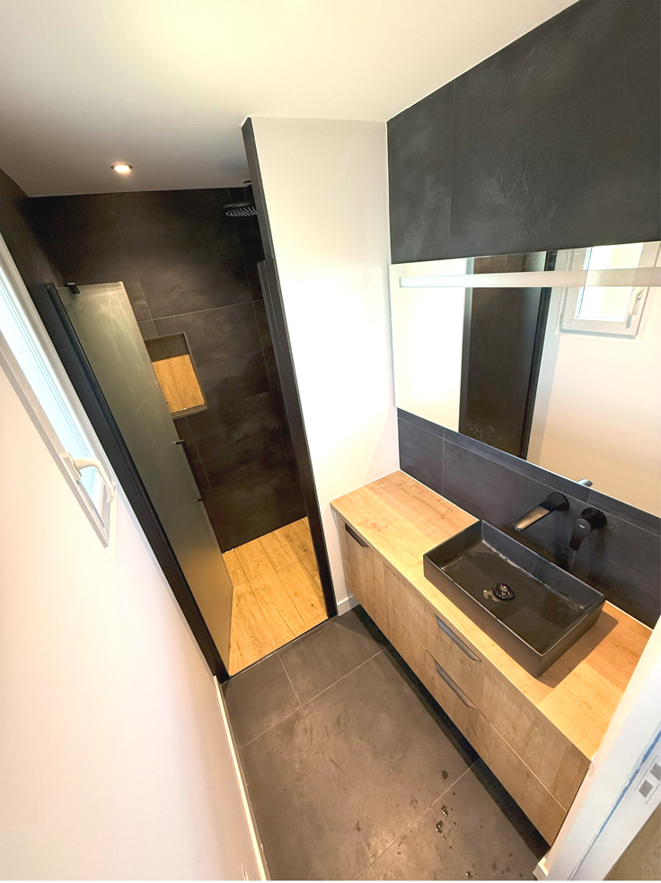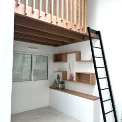 Création d’un bureau pour télétravailler, une salle de jeux pour les enfants, avec une cabane perchée et la rénovation des deux salles de bain existantes.