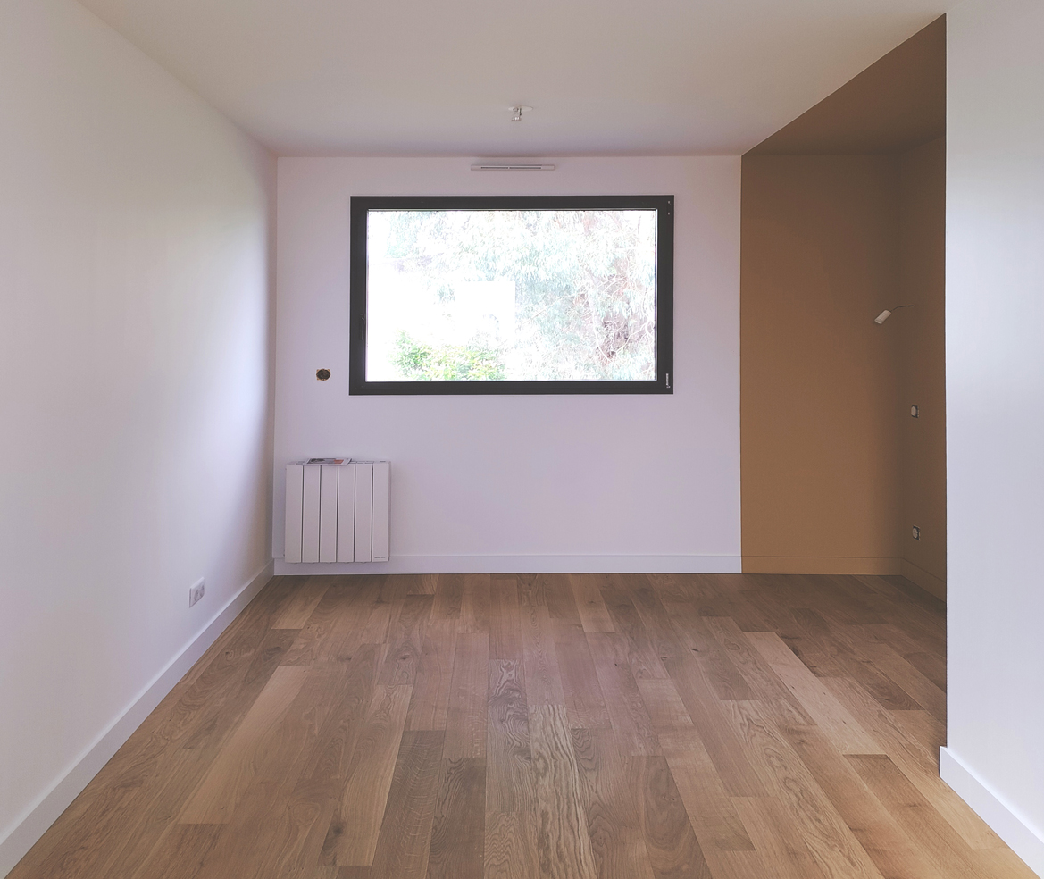 Création d’un bureau-bibliothèque, d’une chambre d’ami et d’une chambre parentale.