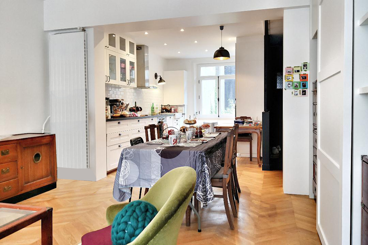 Rénovation lourde d’une maison bourgeoise au cœur de Nantes. Repenser entièrement le rez-de-chaussée pour l’ouvrir d’avantage, aller chercher le beau jardin, et fluidifier les circulations.