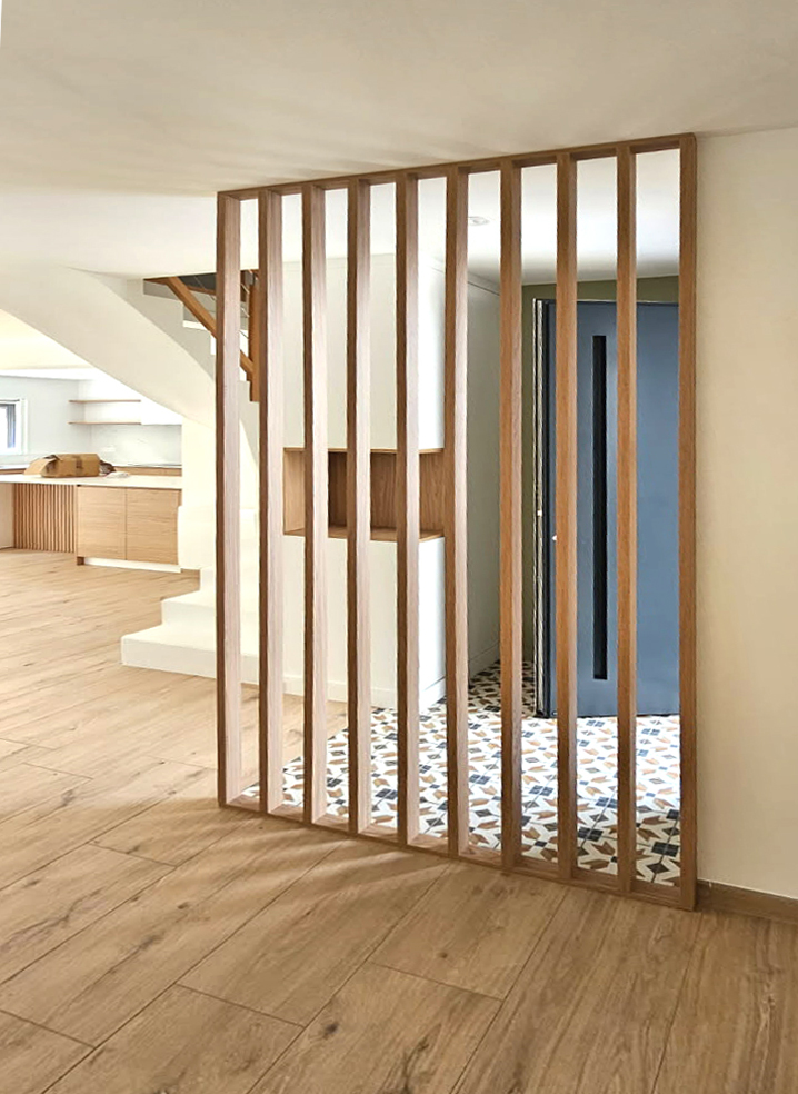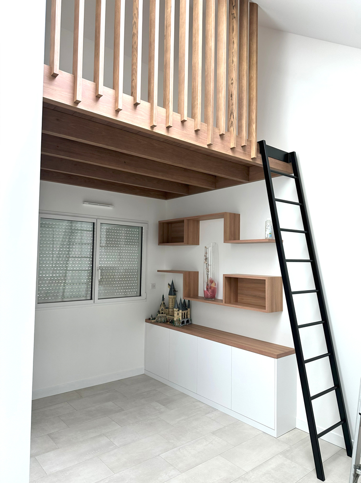 Des meubles dessinés sur mesure à tous les étages, pour l’entrée, la cuisine, les dressings et les salles de bain !