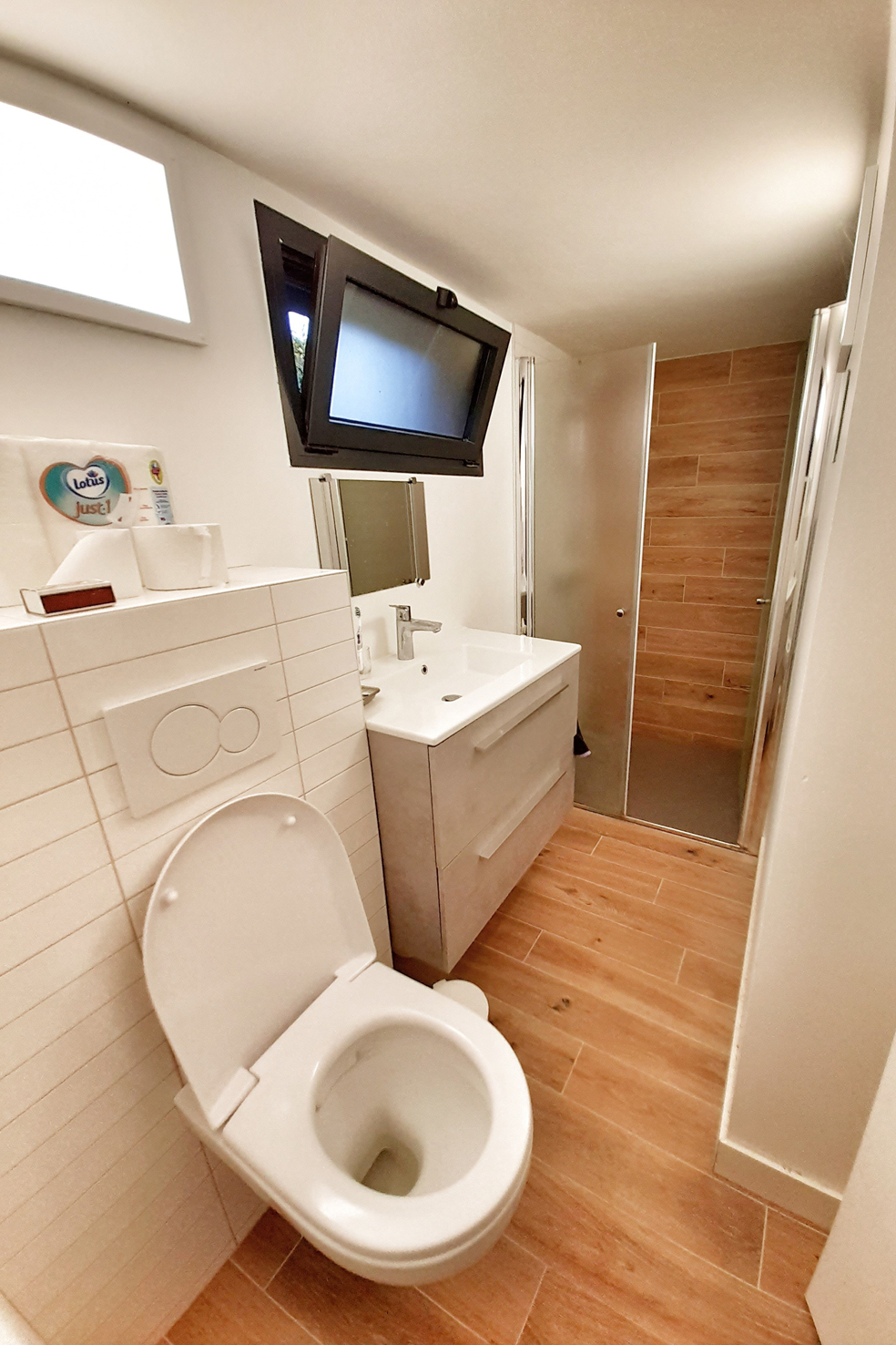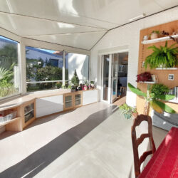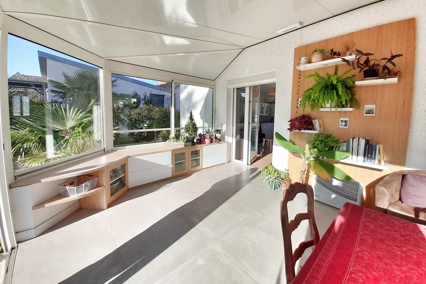 Pensée comme un grand appartement au rez-de-chaussée avec patio et jardinet, avec un étage indépendant pour accueillir la famille de temps en temps sans avoir à tout chauffer.