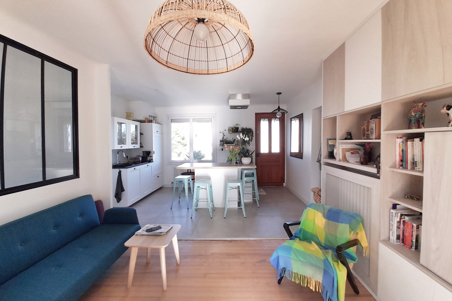 Transformation d’une maison de famille balnéaire en résidence principale pour une jeune retraitée.