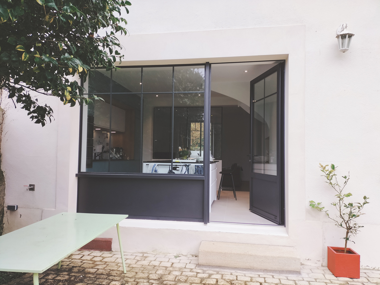 Rénovation totale et extension pour une maison familiale. Des espaces contemporains et définitivement tournés vers le jardin rénové en permaculture (Entreprise Autres Paysages)Soumis à l’Architecte des Bâtiments de France (ABF)