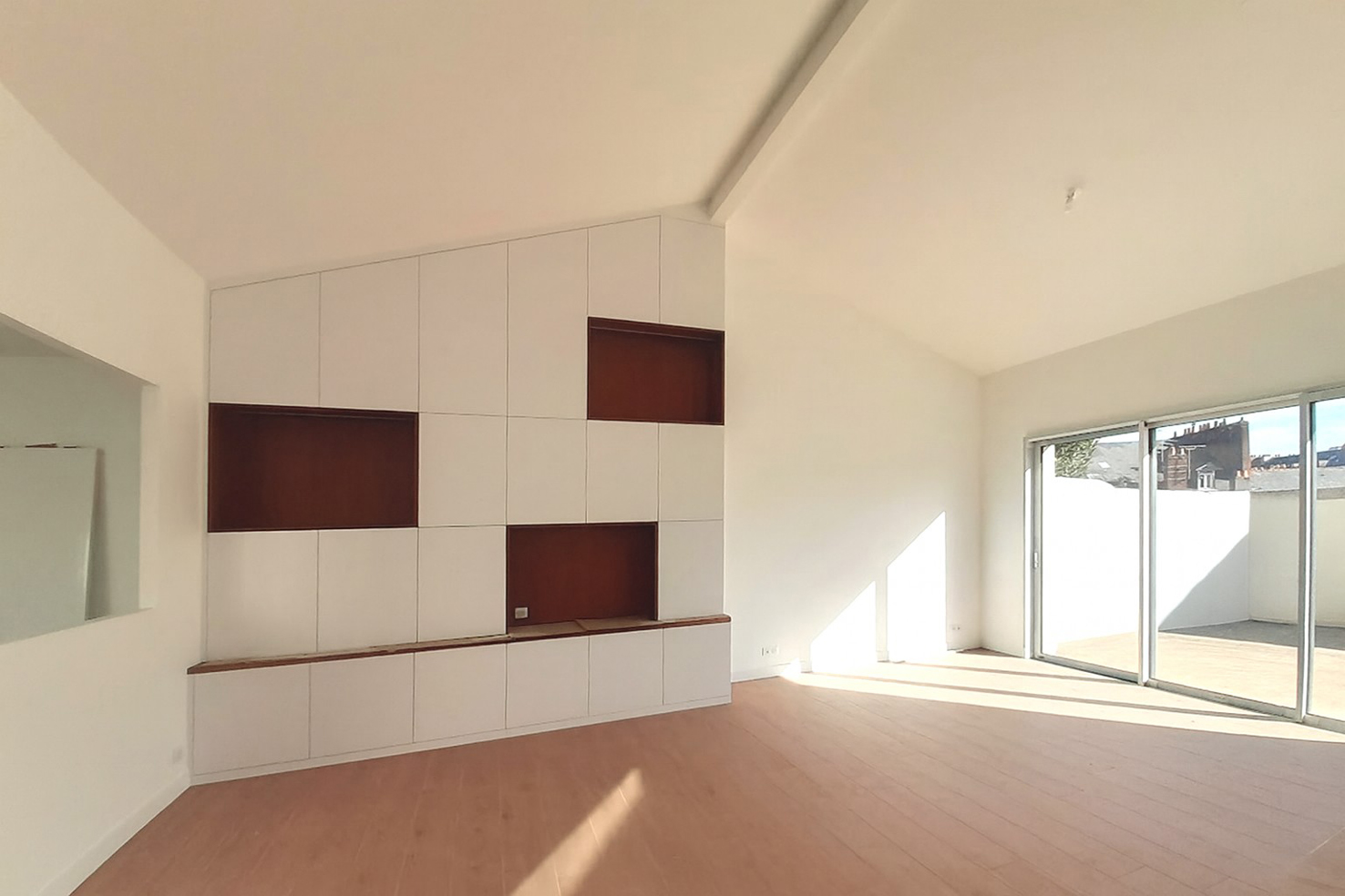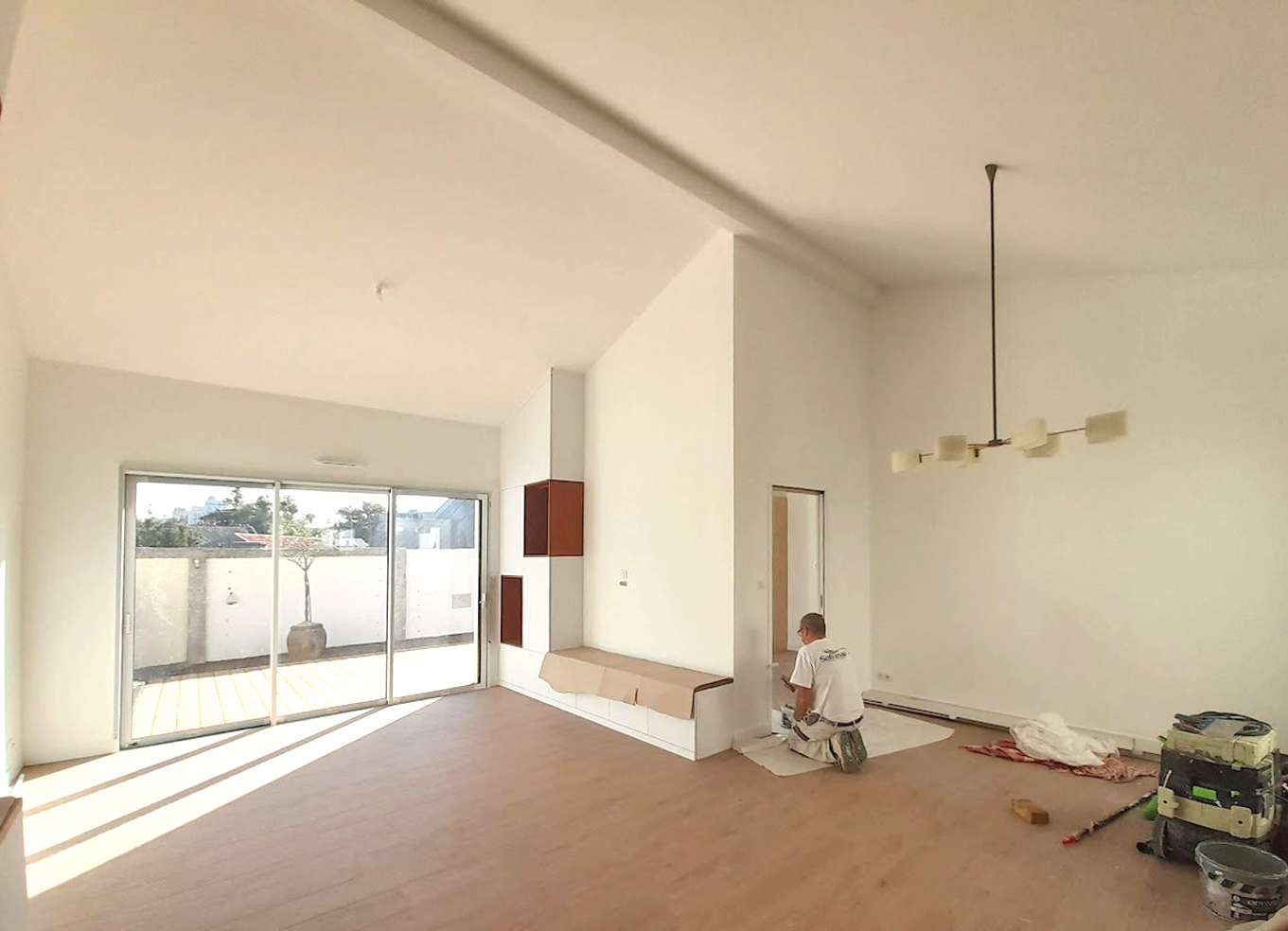 Rénovation d’un appartement sur les toits de Nantes, pour y apporter plus de fluidité et de lumière.