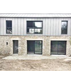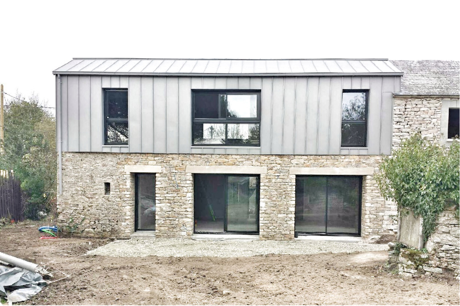 Réhabilitation et extension d’une longère en pierre avec surélévation zinc.Un projet défini autour d’un petit jardin et d’une grande pièce à vivre fluide, ouverte et centrale. Entre respect de l’histoire du lieu (dépendance d’un Manoir du 18ième siècle) et architecture contemporaine. Le projet dessine un jeu autour des différentes cellules de la longère.